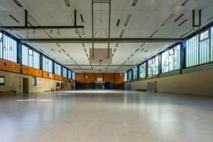 Unsere Sporthalle kann in drei kleinere Hallenteile aufgeteilt werden.