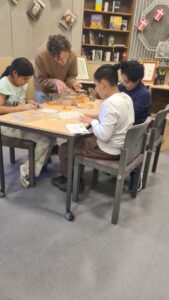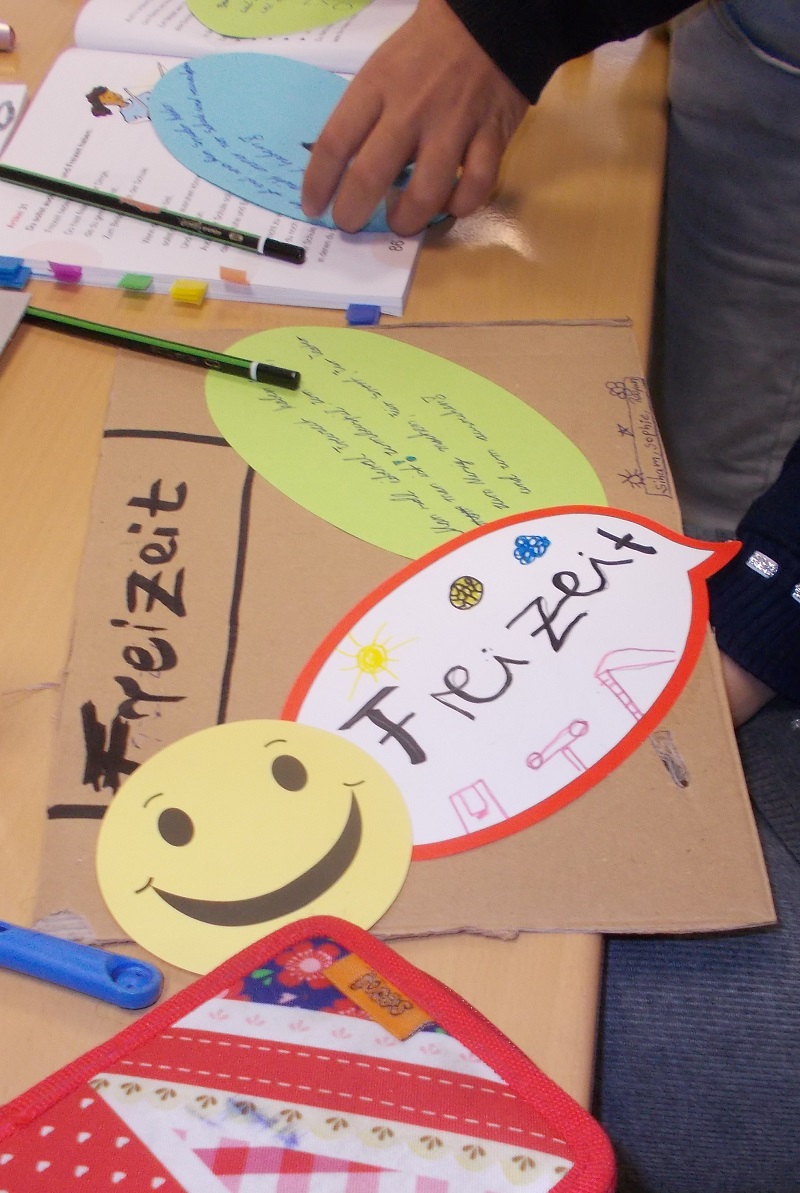 – In der 5. und 6. Klasse haben die Kinder dann ein Textbuch und ein Arbeitsheft, sowie eine Hör-CD mit der sie zu Hause arbeiten können. Auch hier gibt es im PC-Raum eine auf das Lehrwerk abgestimmte Lernsoftware, Filme, die im Unterricht gezeigt und besprochen werden und weiteres Material zur Unterrichtsergänzung.