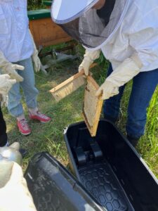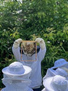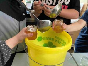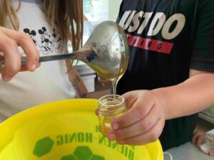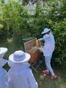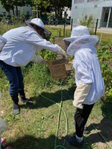Auch auf unserem Schulgelände gibt es einen Teich. Er wird von der gleichnamigen AG liebevoll gepflegt. Neben ihm stehen seit 2022 zwei Bienenboxen. Die Bienenkisten sind Teil des Projekts Kita- und Schulbienen, hinter dem der Verein Stadtbienen e.V. mit Sitz in Berlin steht. Ziel des Umweltbildungsprogramms ist es, Kinder für einen wertschätzenden Umgang mit ihrer Umwelt zu sensibilisieren und ihnen wichtige ökologische Zusammenhänge sowie die enorme Bedeutung von Biodiversität zu vermitteln. Damit die Bienen und die anderen Insekten auf dem Schulgelände genügend Nahrung finden, beteiligt sich die Grundschule an der Bäke am bundesweiten Pflanzwettbewerb “Wir tun was für Bienen” und unterstützt “Deutschland summt!”. Im Rahmen des Projekts “Schule als Garten”, haben die Schüler*innen außerdem Blumenzwiebeln von Frühblühern wie Schneeglöckchen, Krokussen, Narzissen und Tulpen gesetzt und Samen für die insektenfreundliche Wildblumenwiese ausgesät. Auch die Obstbäume bieten Bienen, Hummeln und Co. Pollen, Nektar und Unterschlupf – und gesunde Naschereien für die engagierten Umwelt- und Klimaschützer der Grundschule an der Bäke.